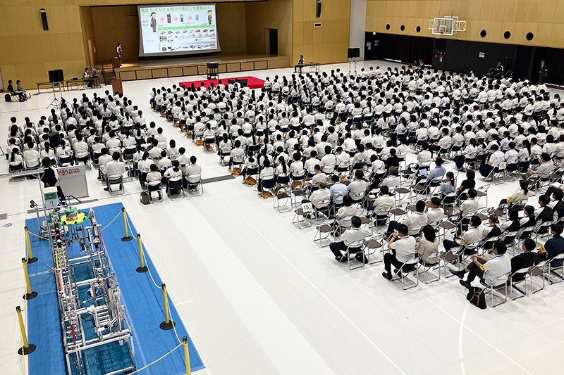 トヨタバッテリー株式会社は、9月9日(火)、本社に隣接する「アリーナ結(むすび)」で、湖西市内の全中学校(鷲津中、白須賀中、湖西中、岡崎中、新居中)の3年生453名へ特別授業を行いました。
